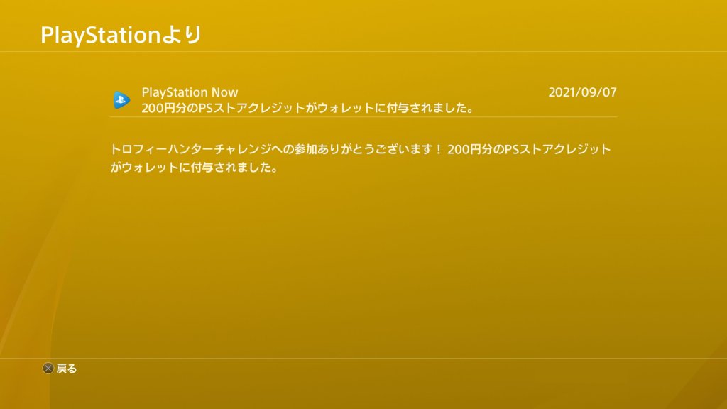 トロフィーハンターチャレンジに参加して200円分のPSストアクレジットを貰おう(8/31まで)
