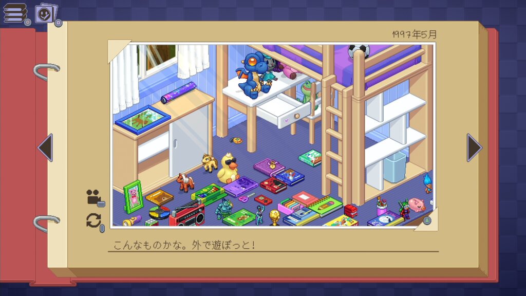 本作は主人公が過ごした21年間(1997~2018)を体感するゲームなのですが、荷ほどきで「いつもぬいぐるみが出てくる。愛着があるんだろうな」と人物像を推察するお遊びも含まれているのですね。